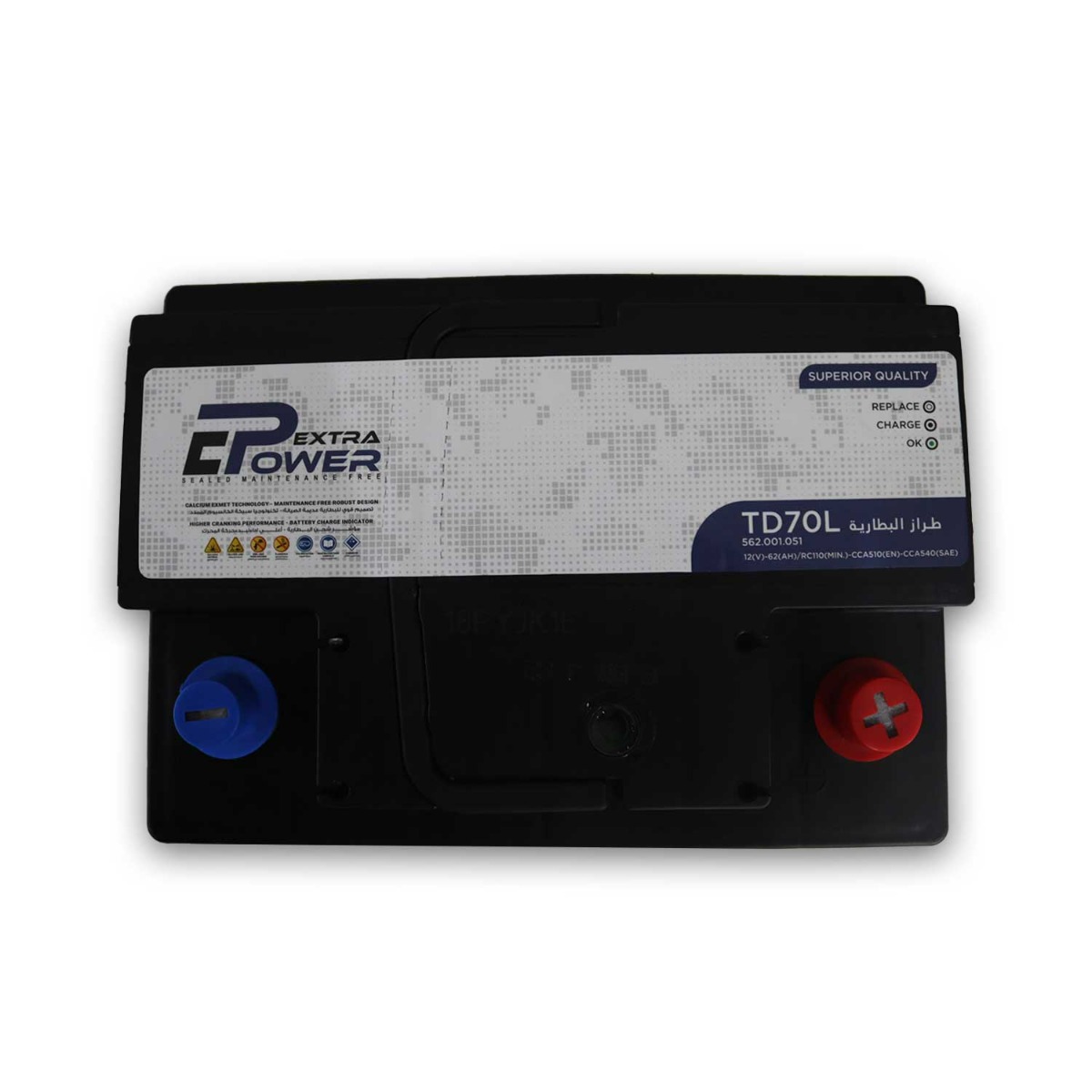 بطارية سيارة من كلورايد اكسترا باور، 12 فولت، 62 امبير - TD70