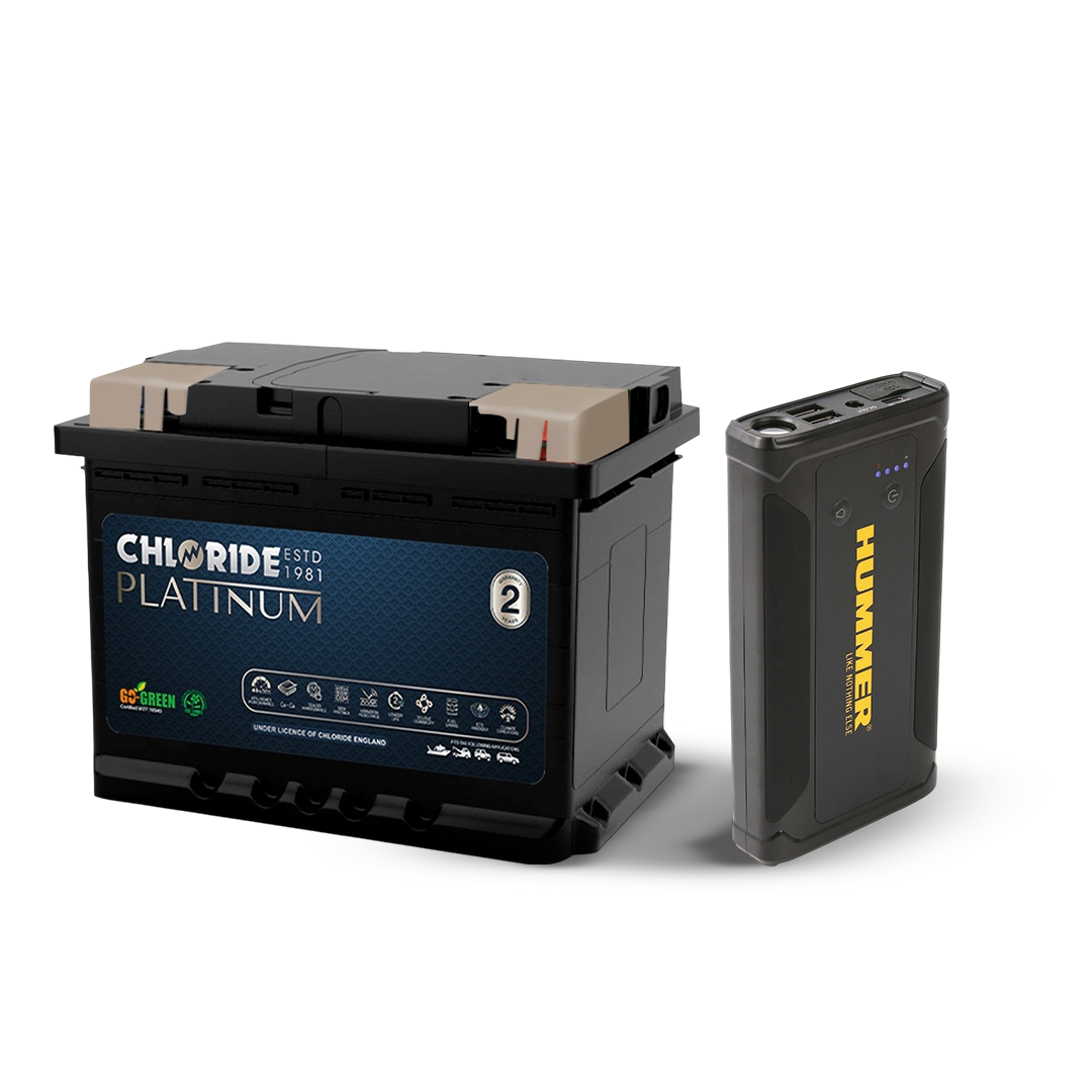 بطارية سيارة من كلورايد بلاتينيوم، 12 فولت، 70 امبير - DIN70L R & شاحن بطارية السيارة و باور بانك هامر