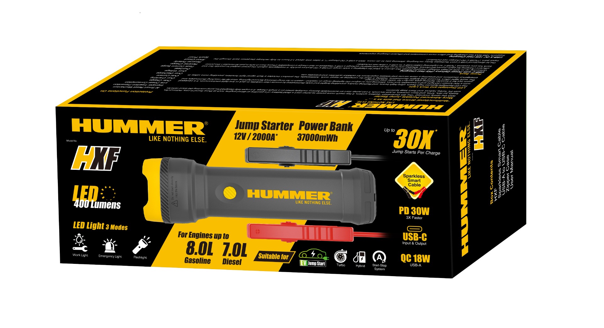 - شاحن بطارية السيارة وباور بانك مع كشاف طوارئ من هامر، سعة 2000 امبير - HXF