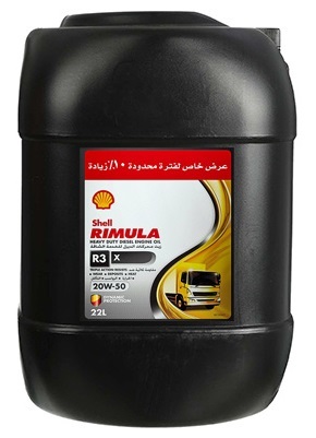- زيت موتور شل ريمولا للخدمات الشاقة R3X، سعة 22 لتر - 20W50