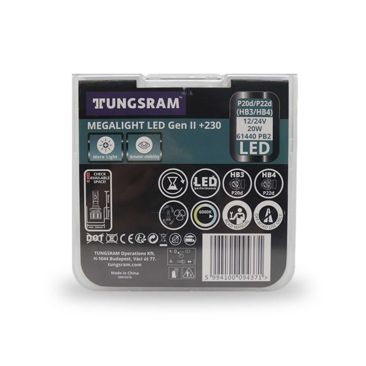 لمبة ليد للمصباح الامامي 6000 كلفن ميجالايت من تونجسرام - 20 وات، 12 فولت، HB3/HB4/61440 - قطعتين