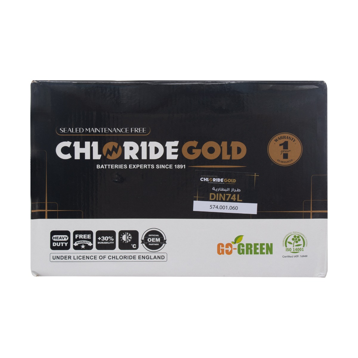 - Chloride Gold Car Battery, 12 Volt, 74 Ampere - DIN74L