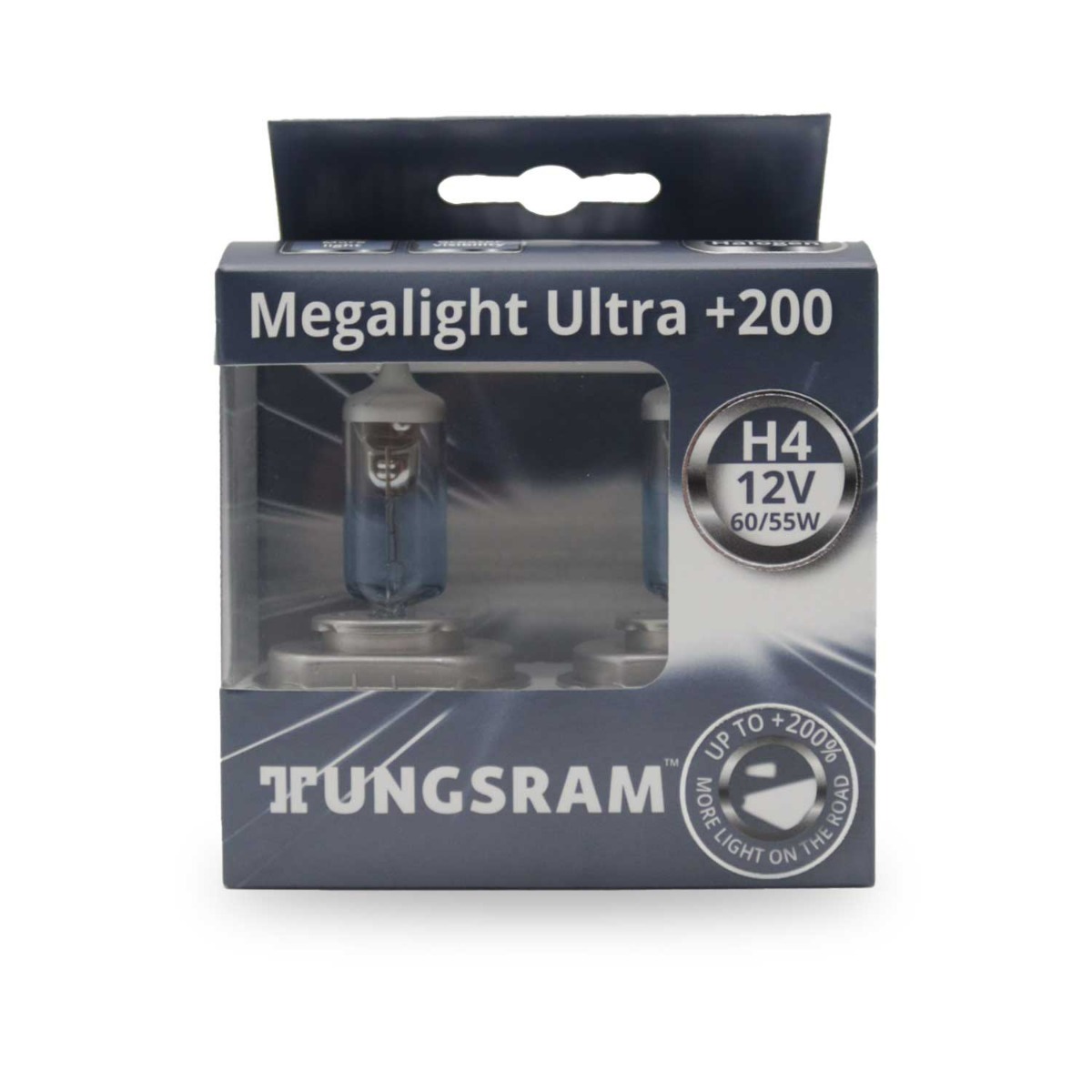 - Tungsram Megalight Ultra +200 Halogen Headlight Lamp, H4/50440XHU, 12V, 60/55W - 2 Pieces